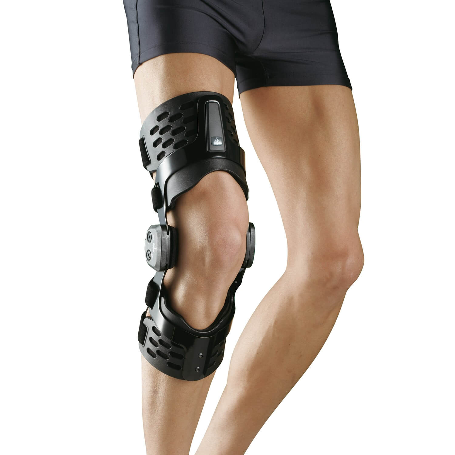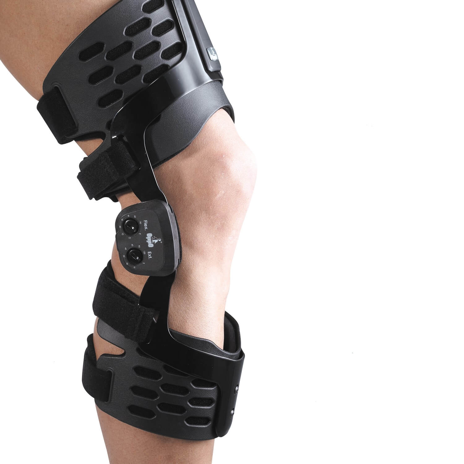 Запатентованная модель из легкого алюминия. Обеспечивает стабилизацию и контроль движения коленного сустава в заданном диапазоне, легкость регулировки угла сгибания и визуального контроля.